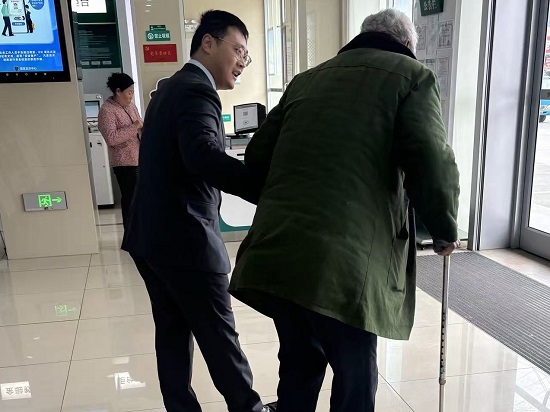 近日,网点员工用两次看似平凡的搀扶,让一位耄耋老人感受到了冬日里最踏实的温暖,也生动诠释了“客户至上”的服务理念。