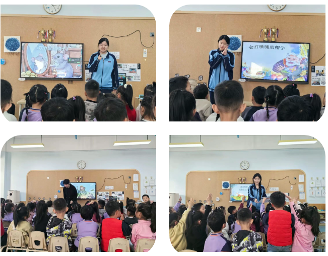 活动现场,共青团员们化身“故事大王”,为小朋友们带来了《谦虚过度》《会打喷嚏的帽子》《胆小先生》《灰老鼠照镜子》《猴吃西瓜》等一系列中外经典寓言故事。讲述者们充分发挥播音主持的专业优势,通过抑扬顿挫的语调、生动形象的模仿和丰富的肢体语言,将故事演绎得趣味横生、精彩纷呈。原本安静的教室,迅速变成了充满惊叹与欢笑的童话世界。