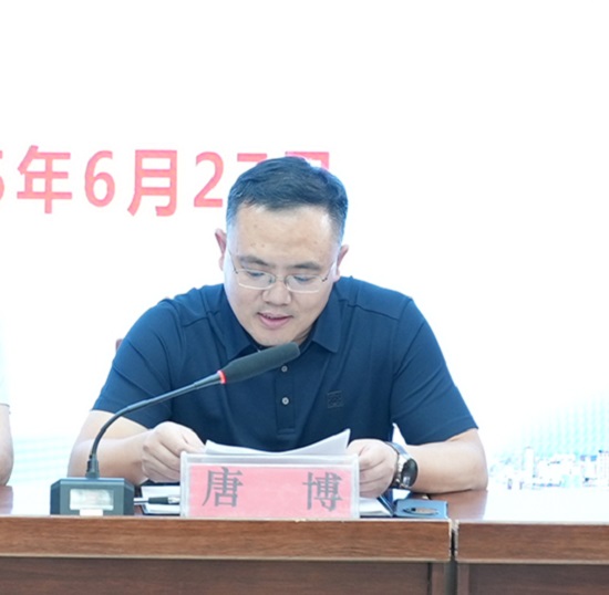 平邑县人民医院副院长唐博宣读《关于加快深化紧密型县域医疗卫生共同体建设的通知》(鲁卫基层字[2025]4号)文件精神并进行详细解读。