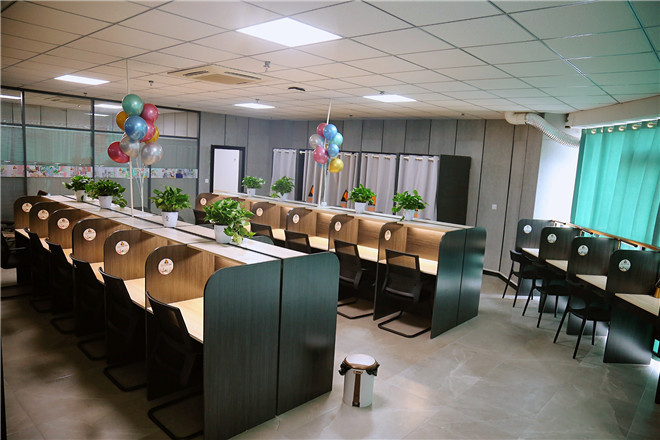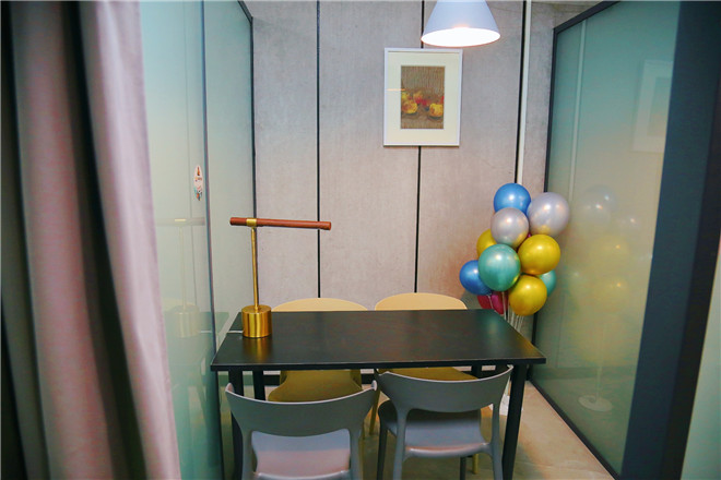 “我们经过前期的选址,从装修,到开业,用了一个月左右。”赵一丹介绍,因为自己是学绘画的,具有一定的设计能力,在这间近400平方米的高层写字间里,随手打造的几处功能区,希望能帮助学子更好的学习。“在绘画中,高级灰的色彩比较冷静、稳重,有着北欧简约风的时尚感,但又给人一种安静的感觉,我们就以它为背景设计了学习间;选用的课桌、书橱等家具,也都是新型环保的无污染装饰材料;高档护眼灯根据人体舒适度进行调节,保护视力,可以为上班族、学生族等不同人群提供不同的学习需求。”