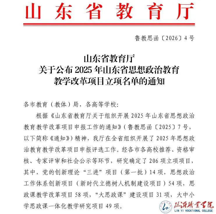 立项!临沂职业学院思想政治教育教学改革项目获省级认定