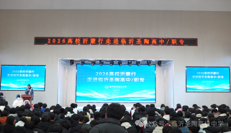 为深化高考综合改革背景下的升学指导服务,助力学子科学规划升学路径,2026年1月14日,由临沂市教育局、临沂市融媒体中心联合主办的“2026高校沂蒙行”宣讲活动在临沂圣陶高级中学举行。