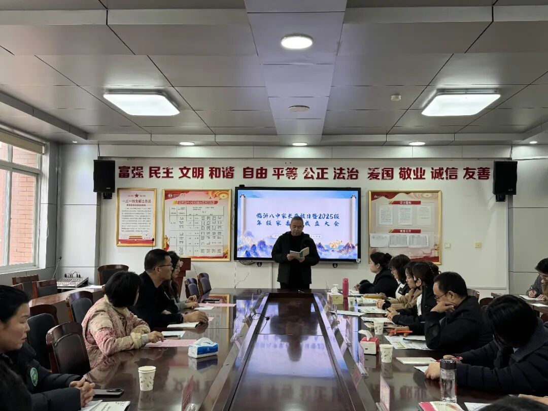 2026年1月 14 日上午,临沂八中在学校初心楼二楼接待室成功召开 “家长开放日暨 2025 级年级家委会成立大会”。