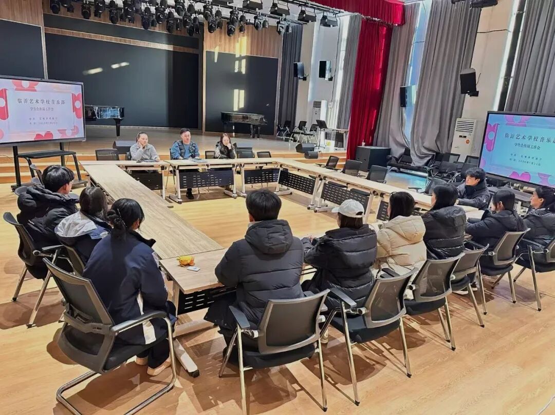 2026年1月22日,临沂艺术学校音乐部学生会换届会议在排练厅举行,会议由音乐部主任黄中琦主持,全体学生会成员及候选代表参会,共同完成了各项工作任务的交接。