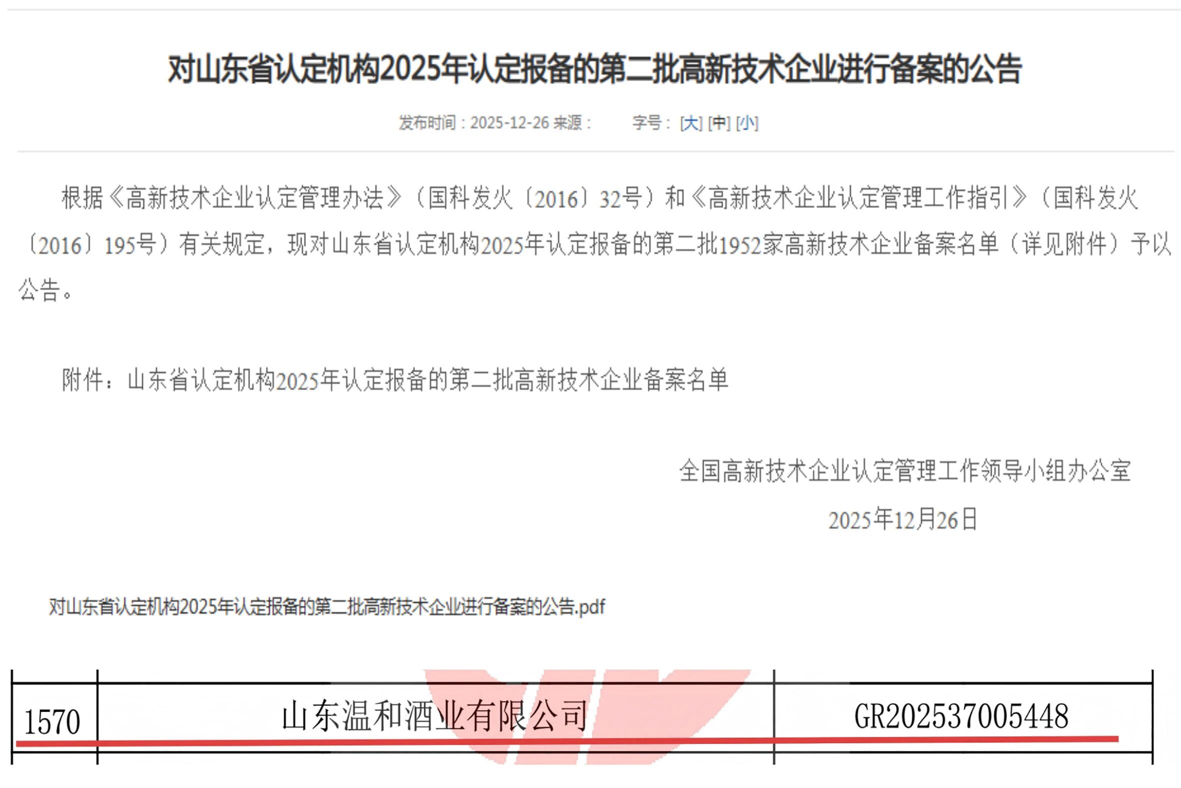 科创加冕:山东温和酒业荣膺“国家高新技术企业”,开启智慧酿造新篇章