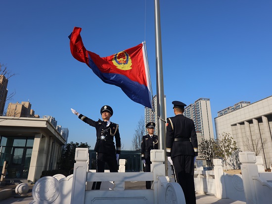 1月9日上午,临沂出入境边防检查站举行升警旗暨重温入警誓词仪式。