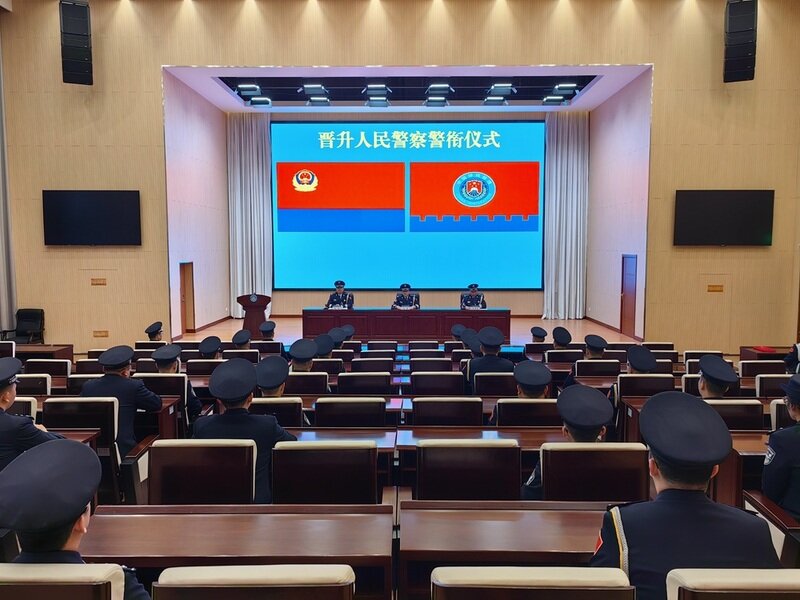 在第六个中国人民警察节来临之际,临沂出入境边防检查站隆重举行晋升警衔仪式。