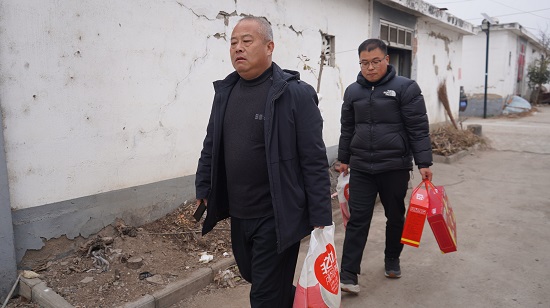2月10日,农历腊月二十三小年这天,临沭县大兴镇残联到芦格庄村走访慰问残疾老人。