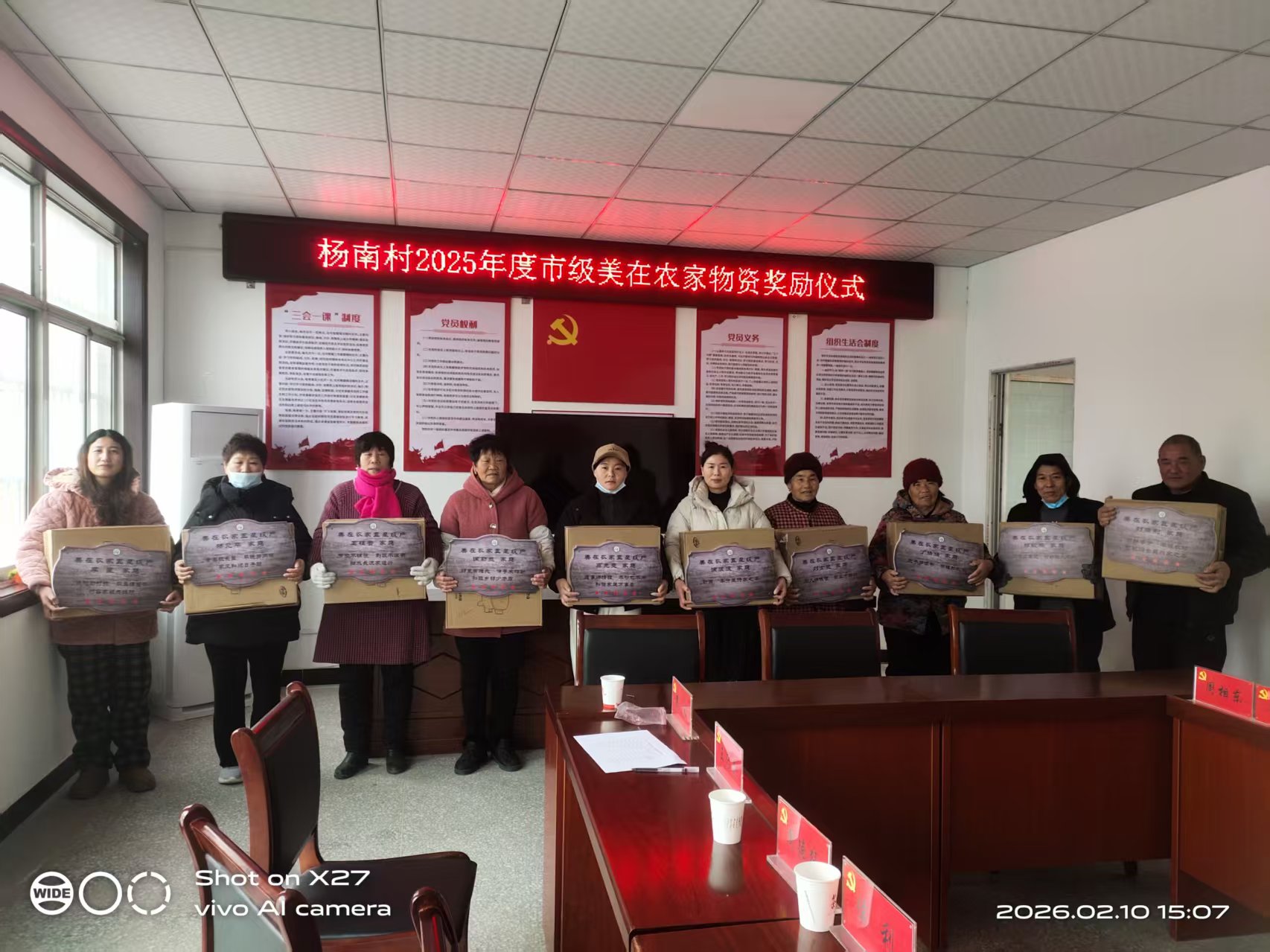 2月10日,郯城县杨集镇举行2025年度市级“美在农家”奖励物资发放仪式,为丁庄村、杨南村共30户市级“美在农家”家庭送上荣誉与实用物资,以表扬先进、示范带动,持续深化美丽乡村与家庭文明建设。