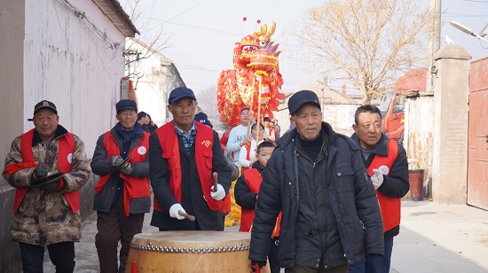临沭县大兴镇李格庄村开展"舞龙贺新春"慰问活动,为烈军属送上节日祝福。