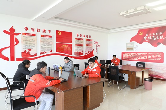 党员活动室里,党纪条例解读展板整齐排列,入党誓词、党员权利义务、“三会一课”等制度跃然墙上。青年高级工程师高存山是该项目负责人,也是党小组组长,工作之余,他正在组织大家开展集体学习:“我们要坚持不懈用党的创新理论凝心铸魂,不断将学习成效转化为工作动力……”