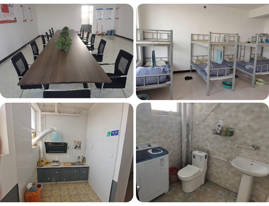 标准化项目部不仅是野外职工工作场所,也是他们感受温暖与慰藉的精神家园。兰陵铁矿勘探项目部坚持“以人为本”理念,科学分区设立办公室、会议室、党员活动室、职工宿舍、厨房餐厅、洗澡间、卫生间等,营造良好的工作生活环境。