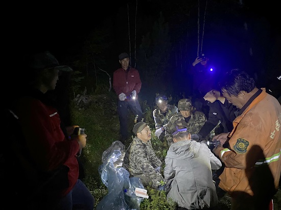 8月26日,项目组在野外作业期间,从采山群众处获悉:一名当地老人于工作区周边林区失联多日。考虑到林区地形复杂、气候多变,失联时间越长危险越大,项目组负责人宗传攀立即将这一情况上报七队内蒙古分院,内蒙古分院立即启动了应急响应,组织项目组与当地公安部门取得联系,获取更详细信息,并迅速调整工作计划,安排项目组成员于当天即展开初步搜寻。